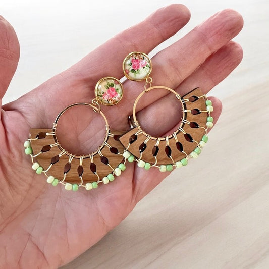 Cottagecore Spring Green Wire Wrapped Post Dangles