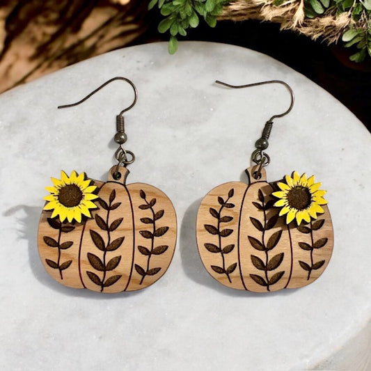 Pumpkin and Sunflower Wood Earrings