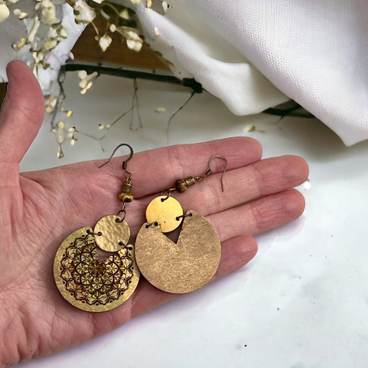 Ombre' Mandala Tribal Wood Earrings