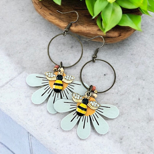 Bumble Bee Daisy Hoop Dangles