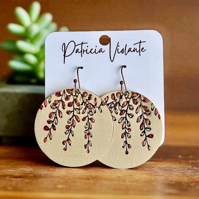 Hand-painted wooden earrings with an engraved leaf design, perfect for autumn days. Made to pair beautifully with your favorite fall layers.